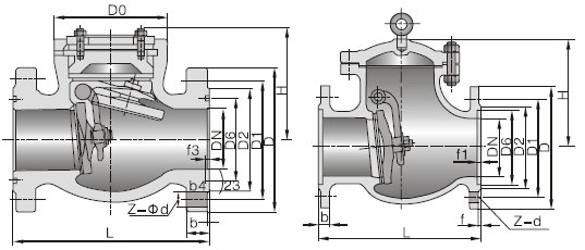 旋啟式止回閥又稱單向閥或逆止閥,其作用是防止管路中的介質(zhì)倒流。啟閉件靠介質(zhì)流動(dòng)和力量自行開啟或關(guān)閉,以防止介質(zhì)倒流的閥門叫止回閥。止回閥屬于自動(dòng)閥類,主要用于介質(zhì)單向流動(dòng)的管道上,只允許介質(zhì)向一個(gè)方向流動(dòng),以防止發(fā)生事故。本類閥門在管道中一般應(yīng)當(dāng)水平安裝。